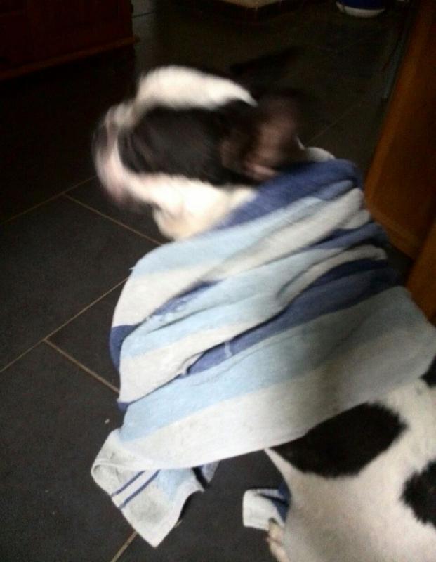 Meinem heiß geliebten Knuddel geht es prima und damit es bei der Hitze auch so bleibt, gibts Plantschbecken und Wasserfangspiele. Anschließend genießt er das Abrubbeln und macht dann sein Nickerchen.