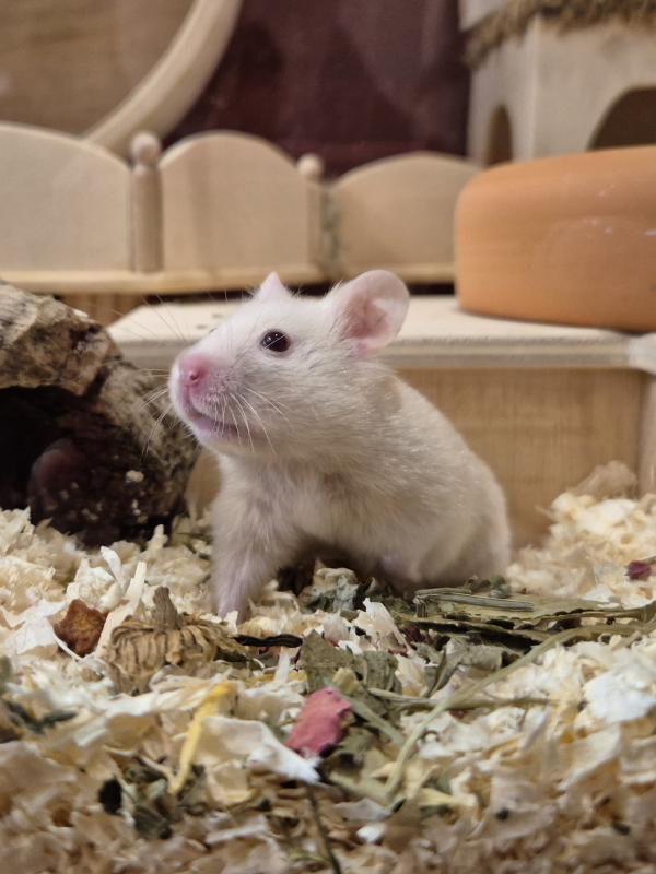 Dürfen wir vorstellen? Unsere Hamstergroßfamilie. Die Mama, Fibi, wurde auf einem Feld gefunden und die Finderin brachte die süße Hamsterdame zu uns. Nach wenigen Tagen in der Pflegestelle erwartete uns dann die Überraschung: 10 kleine Hamsterbabys erblickten das Licht der Welt. Die Mama kümmert sich großartig um ihre Kleinen. Diese sind fleißig am wachsen und lernen mit jedem Tag neue Skills für ihr Hamsterleben. Ab Mitte April sind Fibi und ihre Kinder bereit einzeln auszuziehen. Bis dahin werden die Bilder der Hamsterfamilie hier regelmäßig aktualisiert und Videos der Kleinen auf unserer Facebookseite erscheinen. Wir freuen uns über zahlreiche Anfragen!