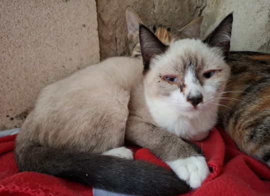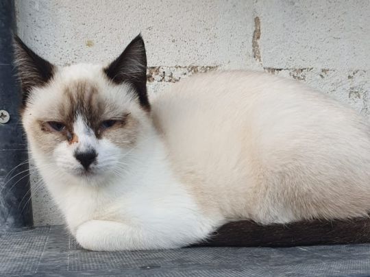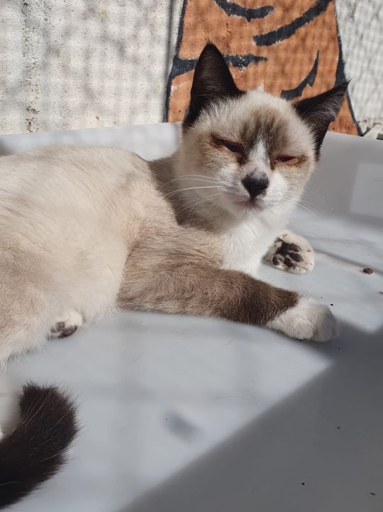 Hugo ist ein wunderschöner Siam-Mix, dessen Äußeres ihn leider nicht davor bewahrt hat, sich in seinem noch so jungen Leben auf der Straße durchschlagen zu müssen. Er wurde mager und mit einer Augenentzündung gefunden und ins Tierheim gebracht. Dort erhielt Hugo die notwendige medizinische Versorgung und konnte langsam aufgepäppelt werden. Trotz seiner anfänglichen Schmerzen ließ er die Behandlung seiner Augen klaglos über sich ergehen.
