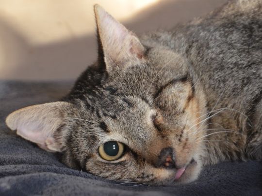 Hallo, ich bin Martin, ein kleiner Kater mit einer sehr großen Geschichte. Im März dieses Jahres hatte ich einen schweren Unfall, der mir leider mein Augenlicht raubte. Es war eine richtig harte Zeit, aber ich hatte Glück im Unglück: Im Tierheim wurde ich liebevoll aufgepäppelt und seit Mai darf ich bei einer tollen Pflegefamilie leben. Trotz meiner Blindheit habe ich mich dort ganz schnell eingelebt und finde mich prima zurecht. Ich teile mein vorübergehendes Zuhause momentan mit zwei Hunden und drei Katzen und habe gelernt, dass Liebe und Geborgenheit auch ohne Augenlicht möglich sind. Ich kuschle für mein Leben gerne mit meiner Pflegefamilie und freu mich immer so sehr über die Wärme von streichelnden Händen ....