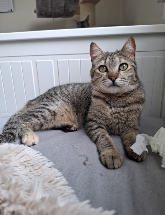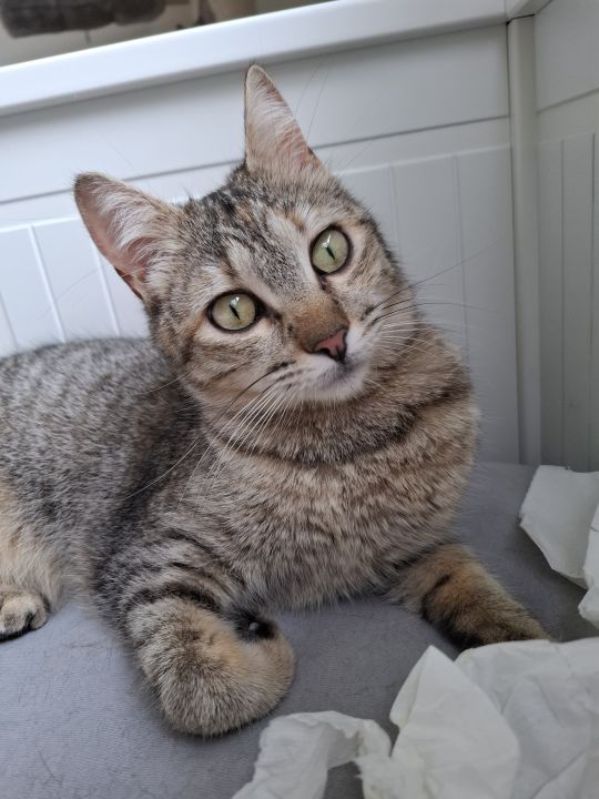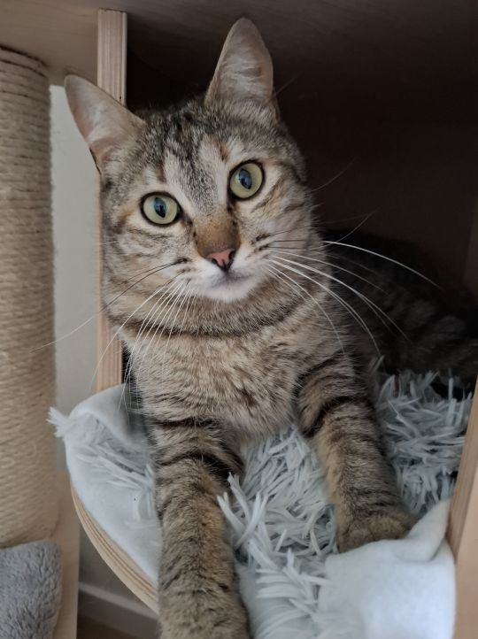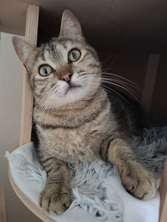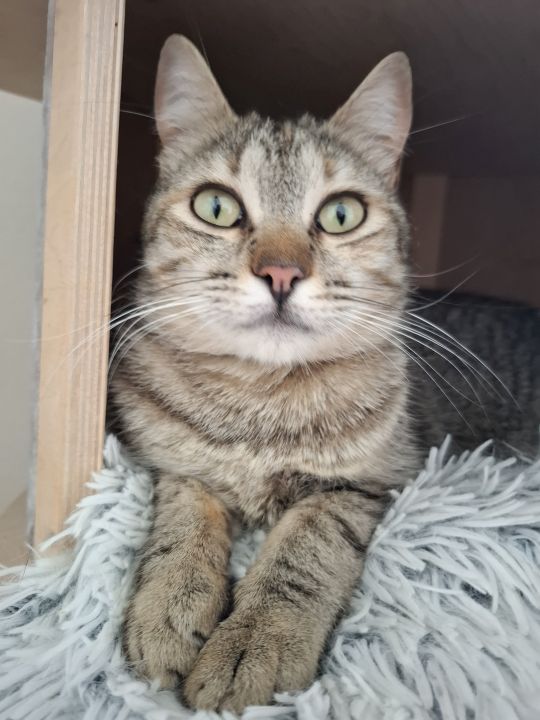 Willst du vielleicht mein neuer Dosenöffner sein? Ehrlich gesagt kann ich nicht so wirklich verstehen warum sich bis jetzt noch keiner für mich beworben hat... ich bin doch so ein nettes Mädchen! Meine liebsten Hobbys sind spieeeelen, klettern und kuscheln. Das macht doch auch dir Spaß oder? Wollen wir diese Dinge nicht in Zukunft gemeinsam machen? =) Da ich ein noch ein junges Miezlein bin, habe ich natürlich noch ein, zwei Flausen im Kopf und bewege mich gerne. Meine Umwelt interessiert mich tierisch und auf Bäume klettern wäre mein ganz, ganz großer Traum. Wenn du also einen schönen Freilaufplatz und viel Liebe übrig hättest, wäre ich genau dein Ding! =) Wenn ich bald auf deinem Schoß schnurren darf, dann melde dich doch einfach gleich bei meiner Vermittlerin.