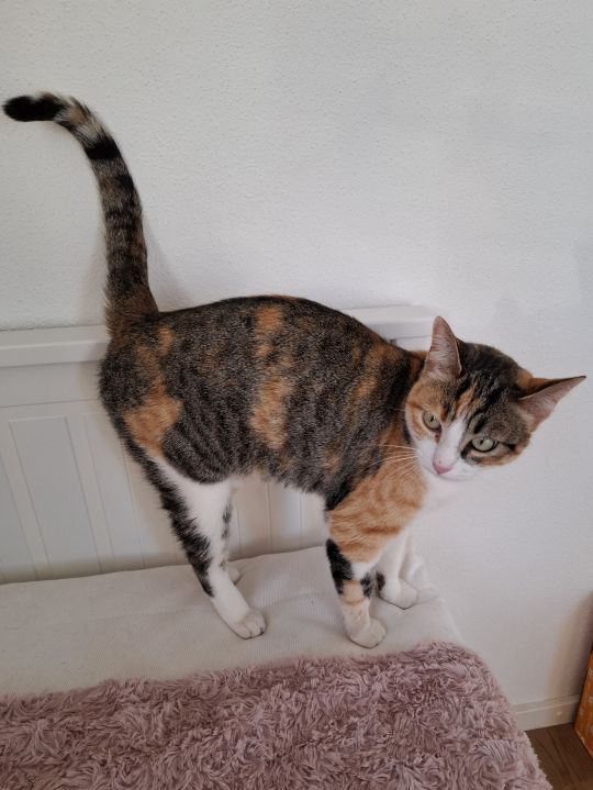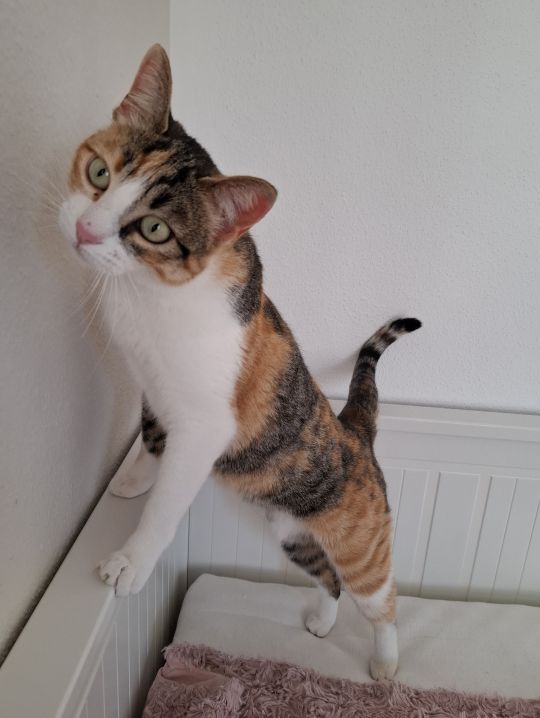 Wenn Sie - nach einer angemessenen Eingewöhnungszeit - sogar Freigang in verkehrsberuhigter Lage (mindestens 200 Meter Luftlinie zur nächsten stärker befahrenen Straße und/oder Bahnlinie) anbieten könnten, würde Paca sicher nicht nein sagen - dann könnte sie auch gerne als Einzelkatze bei Ihnen einziehen und sich draußen mit den Nachbarskatzen anfreunden.