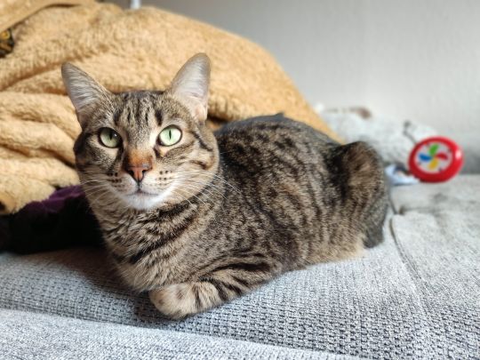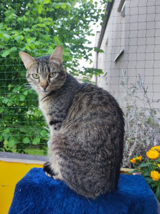 Paqui ist eine freundliche und ganz besonders charmante Katzendame. Sie spielt zwar gerne, ist aber grundsätzlich eher ruhig, gemütlich und liebt die Nähe zu ihren Menschen. Anderen Katzen gegenüber verhält sich Paqui freundlich aber eher vorsichtig und zurückhaltend, würde sich aber sicherlich über einen netten, freundlichen Mitbewohner im passenden Alter freuen. Wir wünschen uns für Paqui ein kuschliges Plätzchen in einer hellen und geräumigen Wohnung - wenn möglich mit Zugang zu einem abgesicherten Balkon.